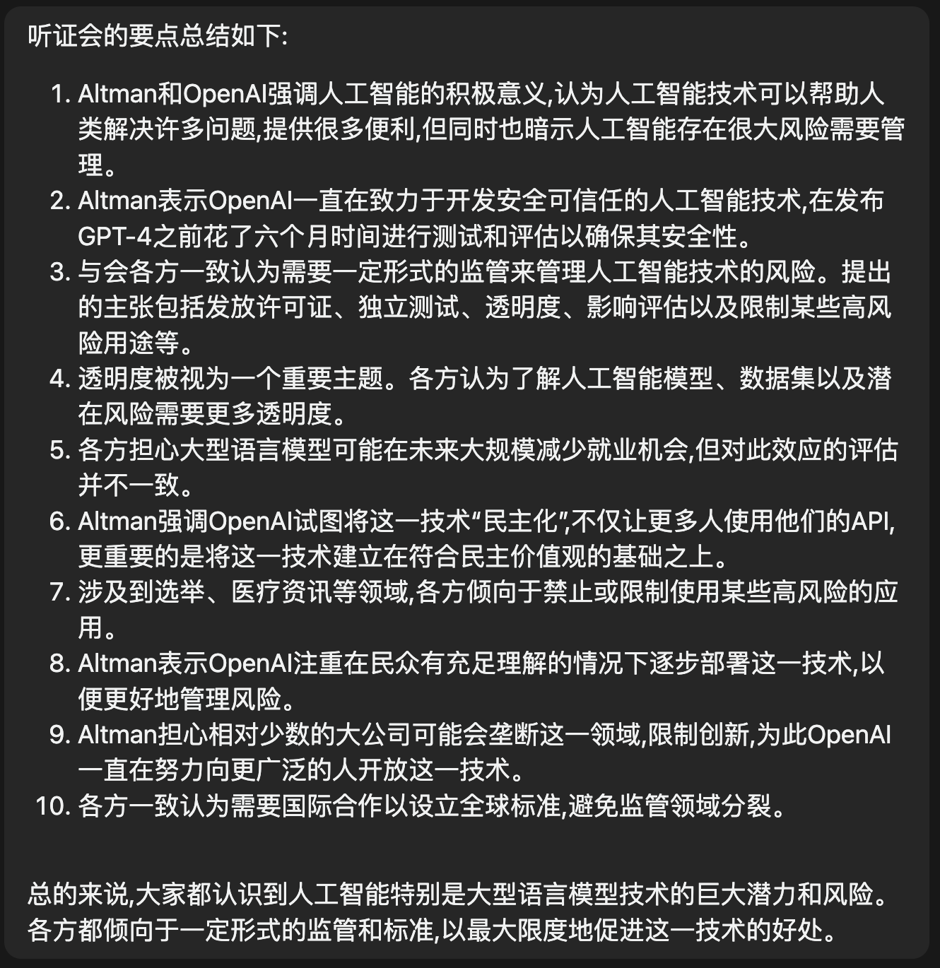 好吧,有听过全场听证会的朋友请告诉我,Claude 总结的对不对?