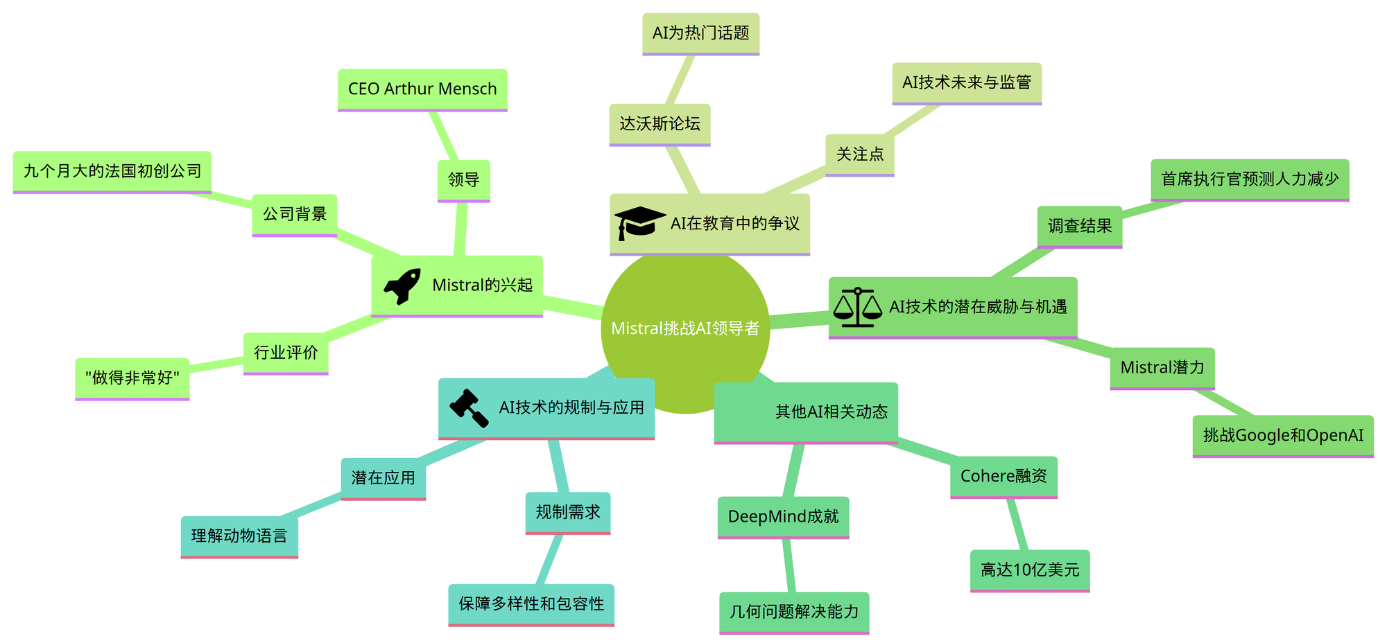 2024年1月19日,法国初创企业Mistral展现出强大的潜力,准备挑战AI行业的领头羊Google和OpenAI。Mistral在AI领域的创新和发展获得了业界的高度评价,被认为是对这两大公司的重大挑战。此外,多伦多的初创公司Cohere也在进行高达10亿美元的融资,成为北美最受关注的AI初创公司之一。在世界经济论坛达沃斯会议上,AI话题成为焦点,涉及对AI技术未来的探讨、监管需求以及其在多领域的潜在应用,如动物语言的理解和数学问题的解决。与此同时,对AI技术必须密切监管以确保其不反映现有偏见和歧视的担忧也在增加。