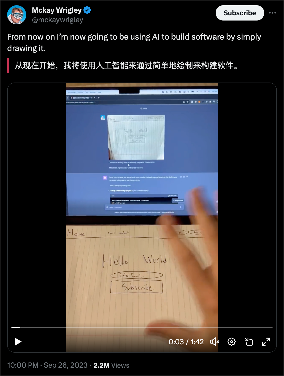 ChatGPT多模态演示:可将草图转化为网页,这是真的|Ai 盛宴,没有人愿意缺席,你呢?| AI快讯 230929