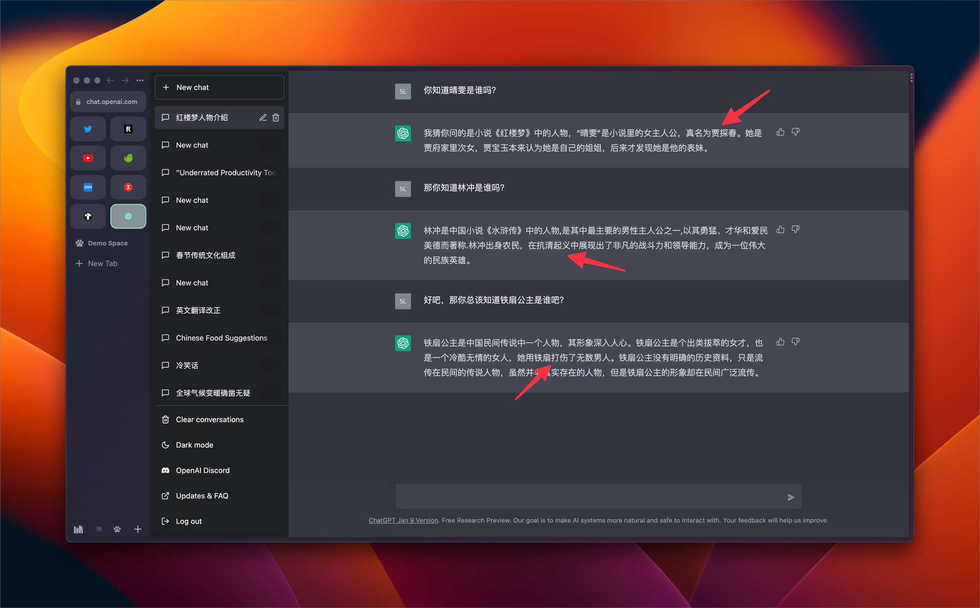 OpenAI 开发了一系列的大型语言模型,简称为 GPT,2019 年,微软向 OpenAI 投资 10 亿美元,随后宣布获得了 GPT-3 的独家许可。什么叫大型语言模型呢?就是多读书就会生长出智能。GPT-3 吃掉了80亿页的文本,这包括几乎所有出版的书籍,以及所有的维基百科。但是我敢肯定它没有读多少中文书,比如我问它晴雯是谁,它说是贾探春,而林冲呢,它说是抗清英雄,至于铁扇公主,它认为铁扇公主用铁扇打伤了无数的男人。