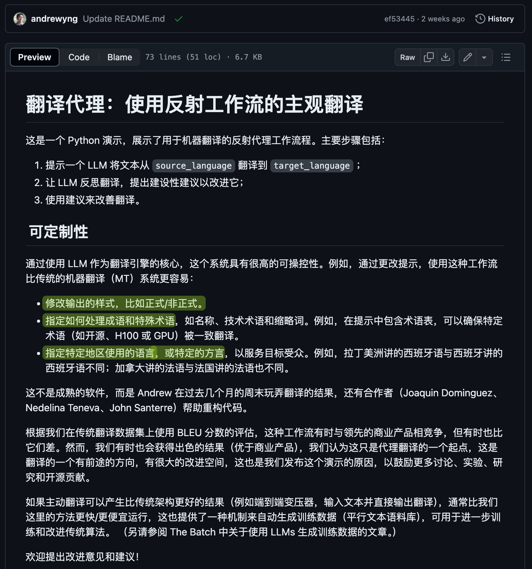 它利用prompt engineering,让AI不仅能翻译,还能"思考"如何改进翻译!这意味着,无论你要翻译的文档有多专业、多复杂,都能得到一个高度定制化的优质翻译。我们可以先看一下翻译效果。