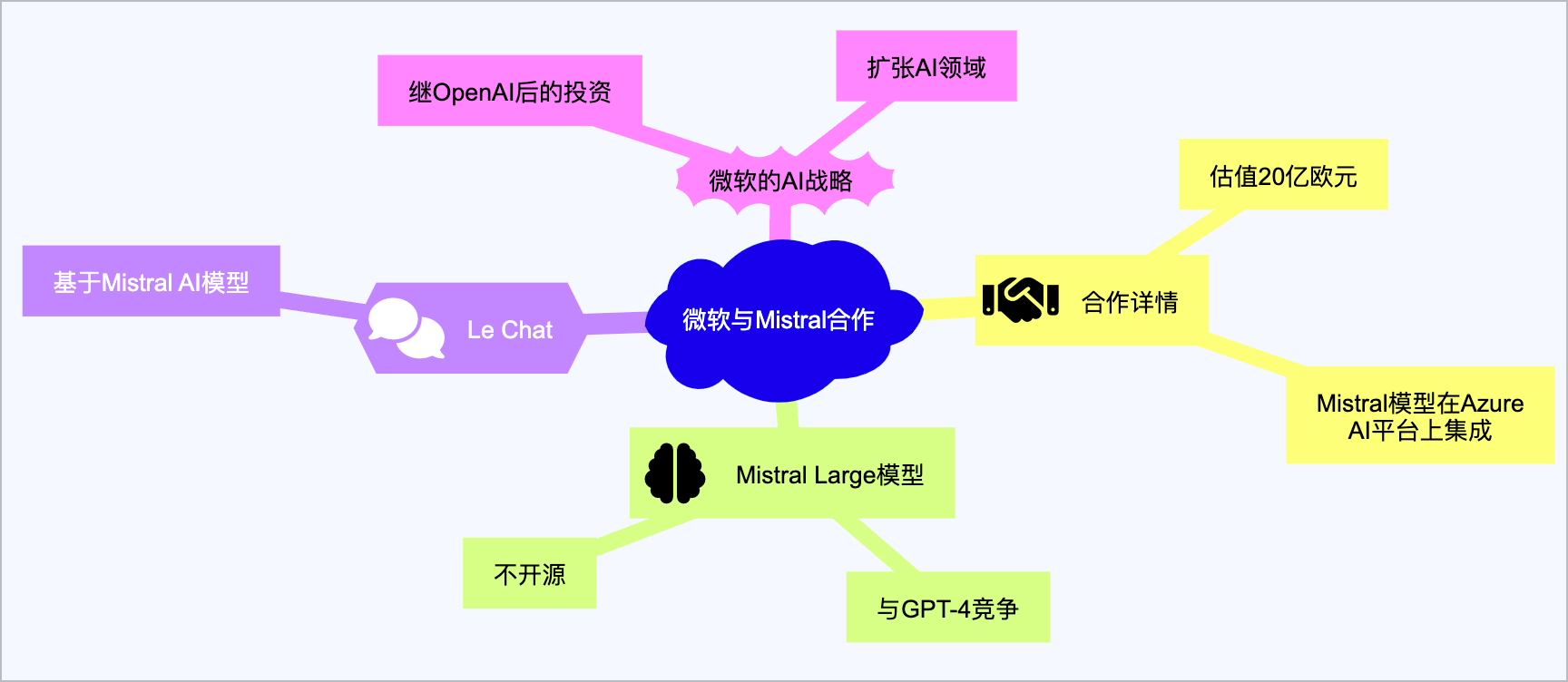 Mistral发布了新的AI模型Mistral Large,旨在与OpenAI的GPT-4模型竞争,该模型将不会开源。此外,Mistral还推出了基于其AI模型的新聊天机器人Le Chat。与微软的合作为Mistral打开了探索更多商业机会的大门。尽管微软与OpenAI的合作中微软获得了非投票观察员席位,但在OpenAI的董事会中没有投票权。此次投资发生在OpenAI经历内部动荡几个月后,展示了微软在AI领域的持续投资和扩张策略。