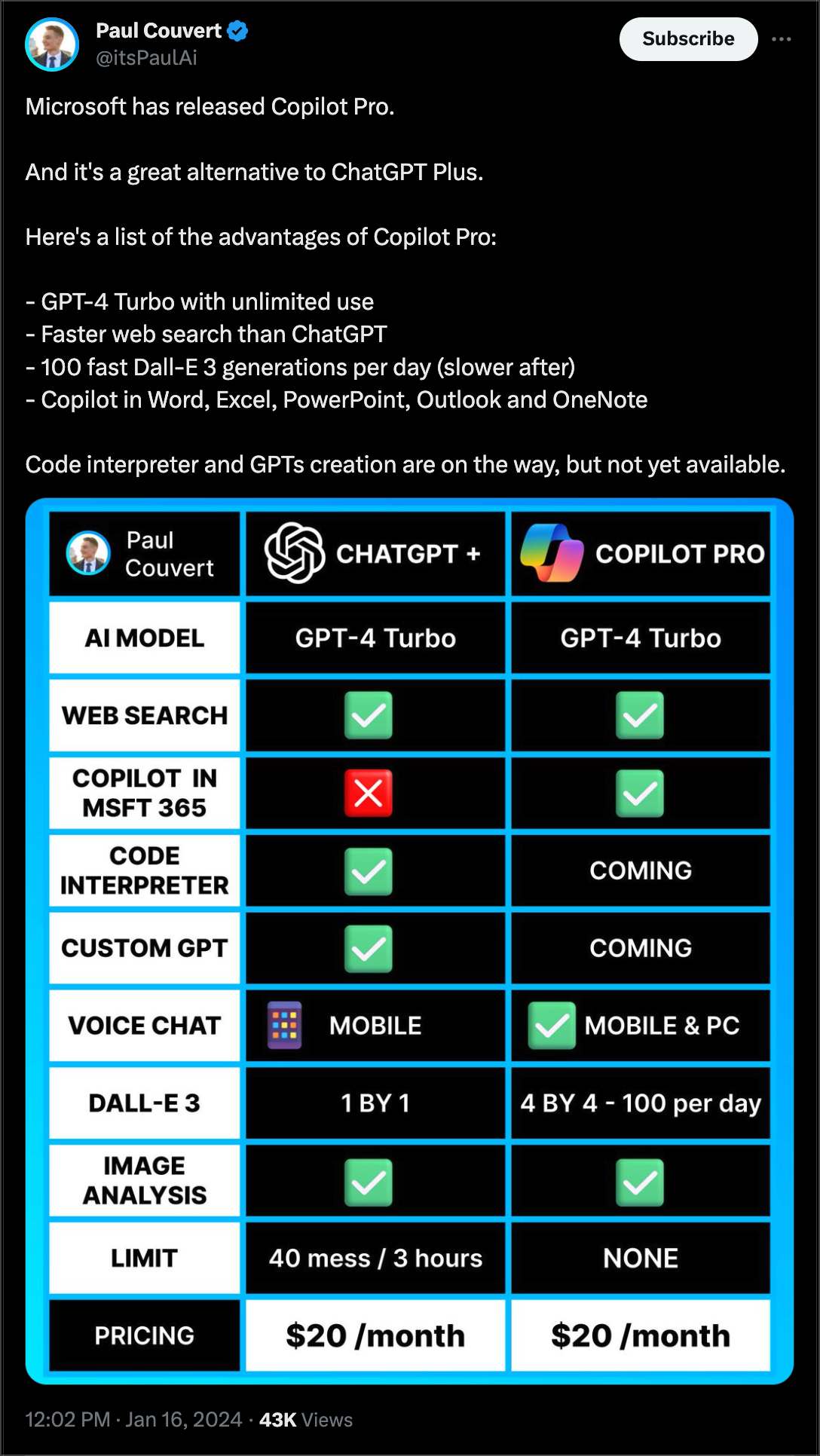 微软推出Copilot Pro,不限消息数量 | 三星即将发布集成 AI 功能的 S24|AI 快讯20240117
