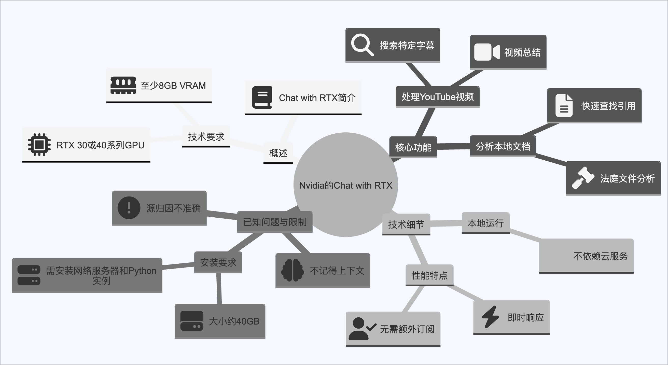 Chat with RTX 能够处理 YouTube 视频,并支持搜索特定字幕或总结整个视频。此外,该工具对本地文档的搜索能力尤为突出,能够迅速找到视频中的特定引用或分析法庭文件等重要文档。尽管存在一些已知问题和限制,如源归因的不准确性和不记得上下文的问题,但 Nvidia 通过这一技术演示展示了 AI 聊天机器人未来在个人电脑上本地执行的潜力,尤其是对于那些不希望订阅云服务即可分析个人文件的用户。