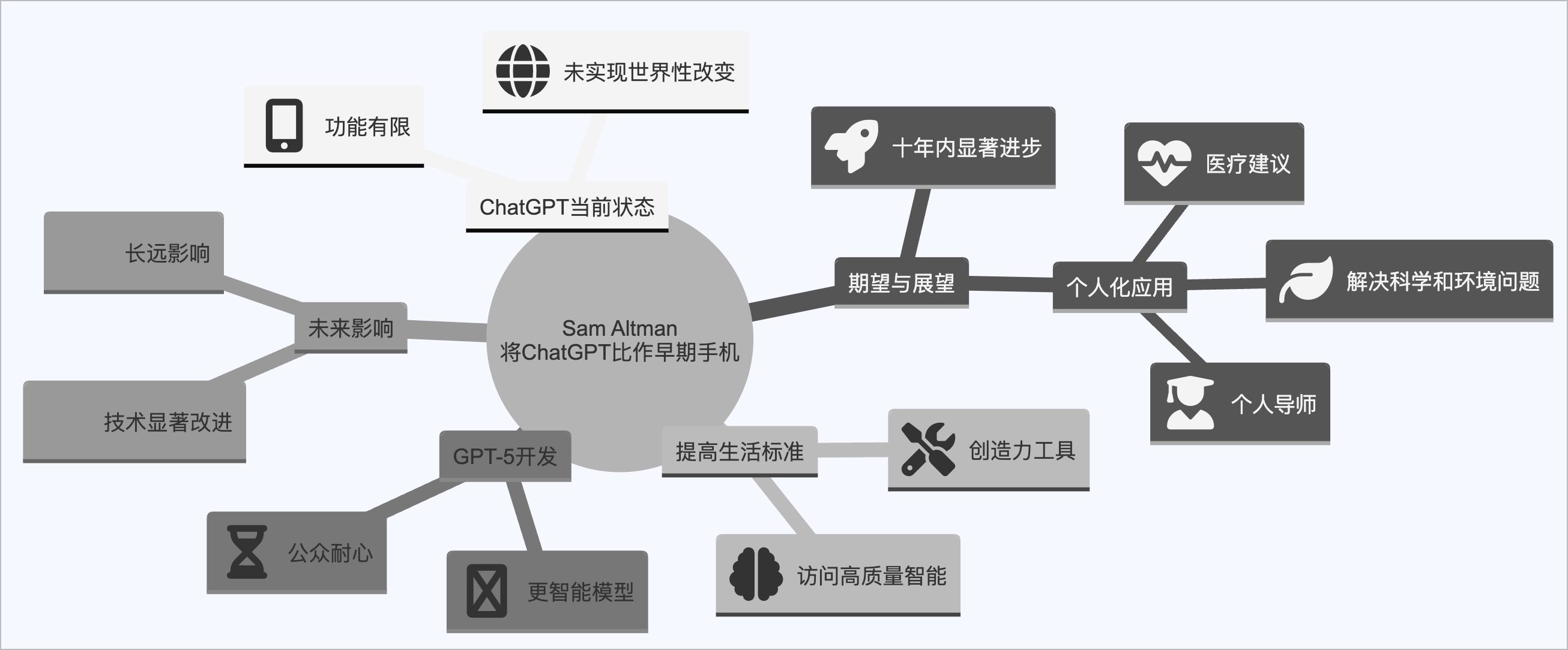 OpenAI 的 CEO Sam Altman 把目前的 ChatGPT 模型比作早期的、功能有限的手机,强调该技术尚处于初级阶段。他指出,尽管 ChatGPT 受到广泛欢迎,但目前还未实现公司期望的世界性改变。