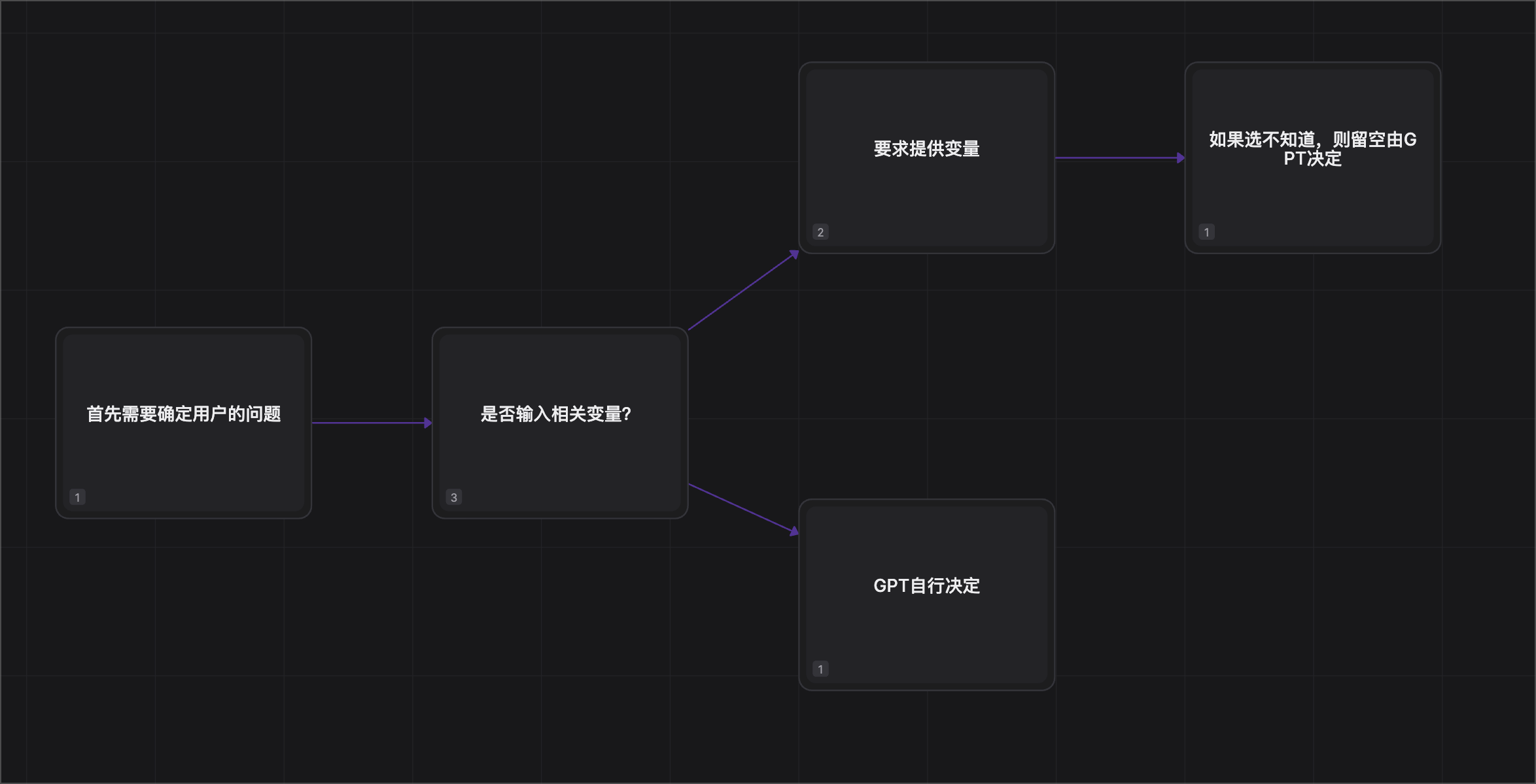 那么我们就需要首先设计组装流程了。既然咱们是用ChatGPT来帮助决策,所以我们需要让ChatGPT帮助分析的问题,是必须要有的,不能省略掉,省略掉就没意思了。