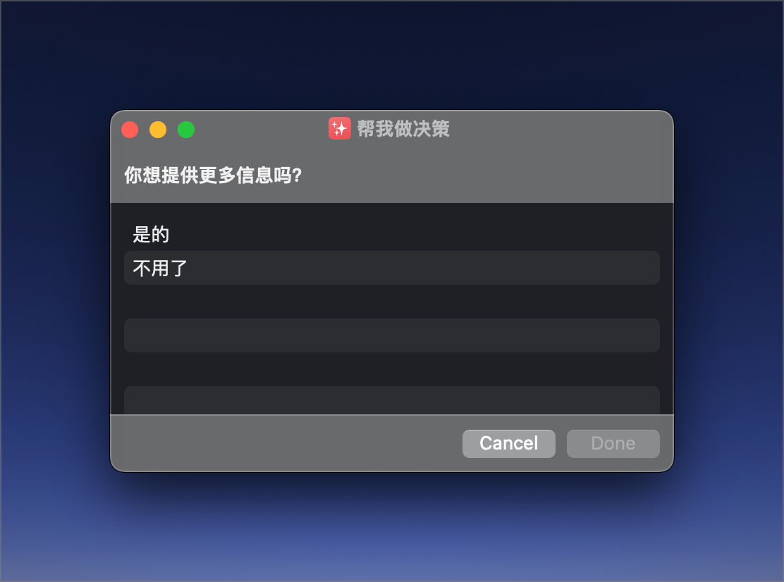 ChatGPT加上Siri和iOS捷径,就能做出效果不亚于商业的AI应用。这次跟大家分享的就是AI应用之一,ChatGPT帮你做决策。